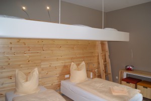 So entstanden 2 und 4 Bettzimmer die von den Gästen selbst unkompliziert an die eigenen Bedürfnisse angepasst werden können.